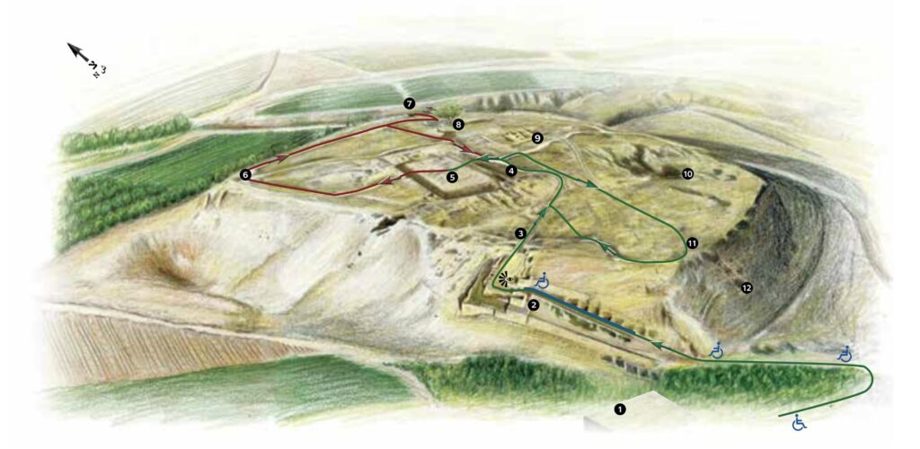 After arriving and parking at the entrance, begin your visit at the visitor center. Here you’ll find a small exhibition with copies of the monumental stone reliefs from King Sennacherib’s palace at Nineveh, vividly depicting the Assyrian conquest of Lachish. Seeing these images first helps anchor the story in your mind before you set foot on the mound itself.