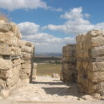 Continue to the six-chambered gate, attributed to the time of King Solomon (10th century BCE), showing advanced Israelite city planning.